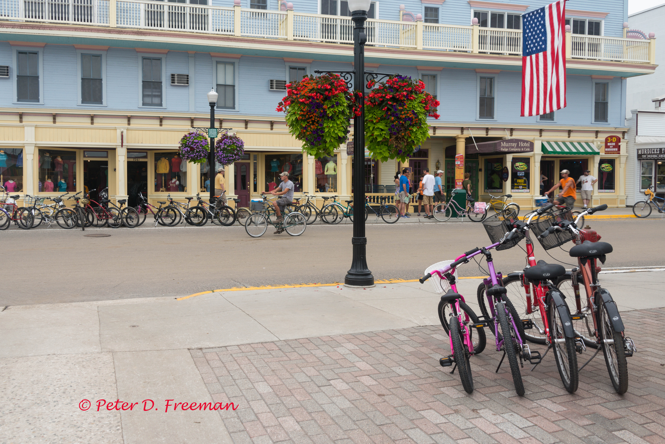 Categories: Buildings, Michigan, Street Scenes Tags: bicycles, Mackinac Island, Michigan, people, street scenes